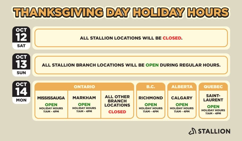 With Thanksgiving approaching, we want to inform you about our adjusted hours and schedule for all our locations. Below are the holiday hours across each of our many branches.